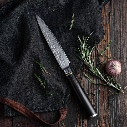 Den kombinerede styrke af VG-10 stålkernen og de mange lag damaskusstål giver knivene en skarphed, der gør madlavningen både lettere og mere effektiv. Skæreevnen er optimeret, så knivene kan glide gennem maden med minimal friktion, hvilket sparer tid og kræfter i køkkenet. Samtidig betyder den lange holdbarhed, at knivene ikke skal slibes så ofte som almindelige knive, hvilket gør dem endnu mere praktiske for dem, der sætter pris på kvalitet og bekvemmelighed.