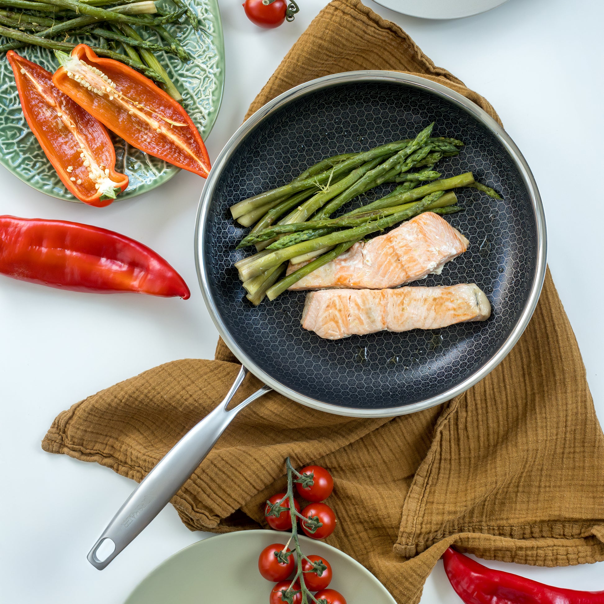 Med Norskaers keramiske Non-Stick belægning kan du tilberede dine retter med minimal brug af fedtstof, uden at gå på kompromis med hverken funktion eller holdbarhed – selv ved høj varme og hyppig brug.