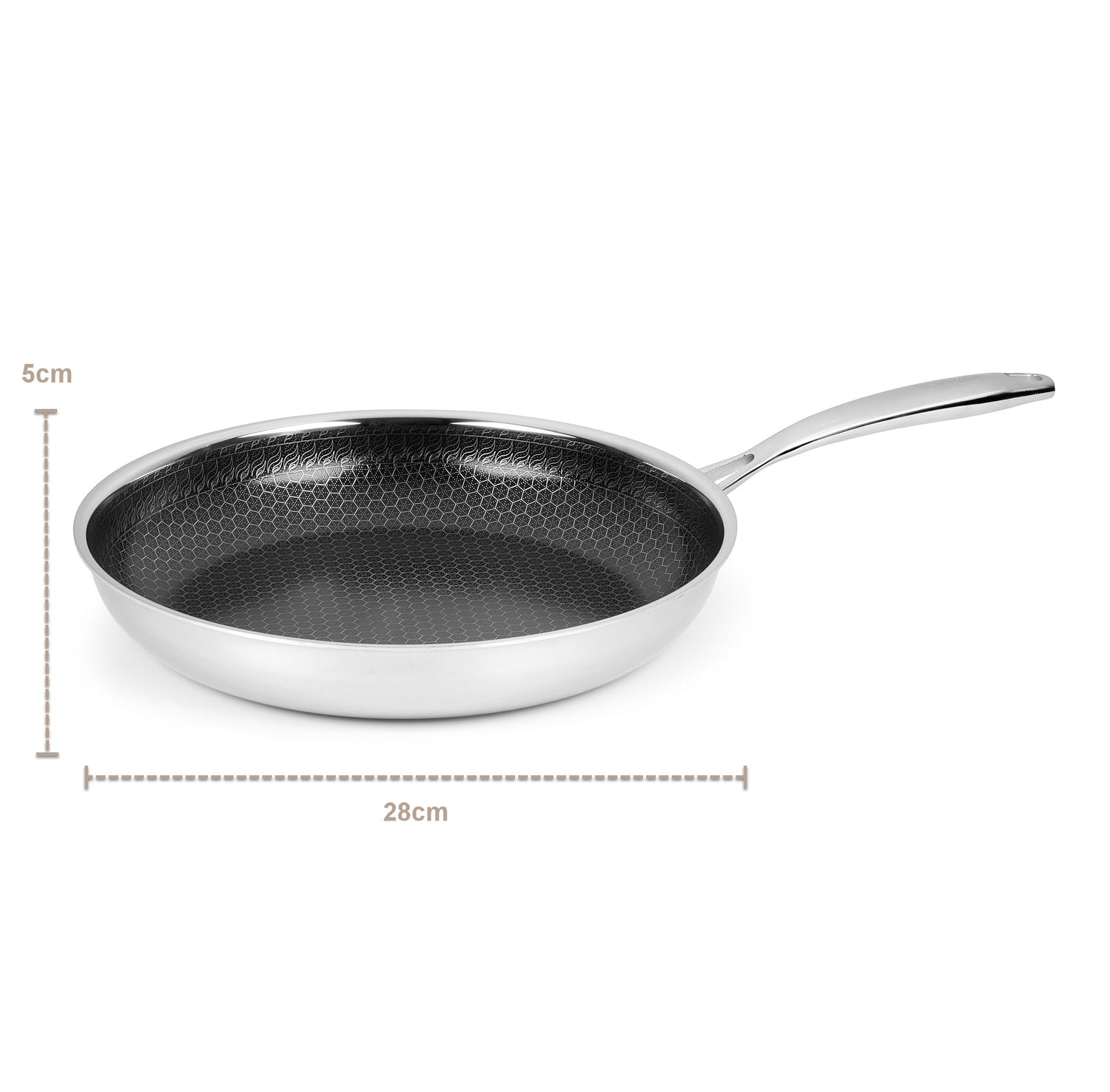 Bag belægningen ligger den solide Tri-Ply rustfrit stålkonstruktion, der giver produkterne deres fremragende varmefordeling og robusthed. Denne konstruktion består af tre nøje sammensatte lag: et ydre lag af rustfrit stål, der beskytter mod korrosion og sikrer en flot og langtidsholdbar finish; en kerne af aluminium, som er kendt for sin fremragende varmeledningsevne, der sikrer en jævn opvarmning uden kolde pletter; og et indre lag af rustfrit stål, der gør gryder og pander kompatible med alle varmekilder, inklusive induktion. Denne konstruktion gør produkterne ideelle til præcis temperaturkontrol, hvilket giver perfekte resultater, uanset om du simrer, steger eller koger.