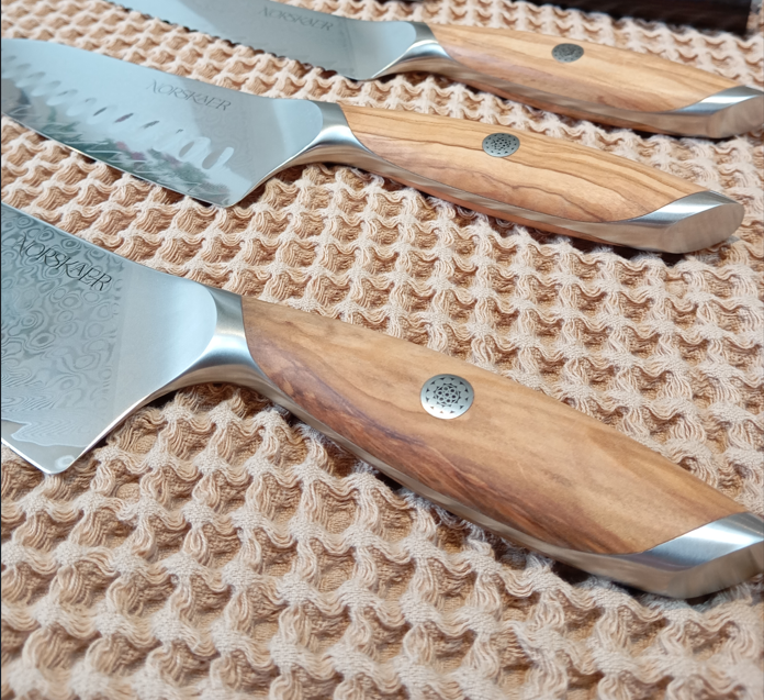 Norskaer Olive Wood knive er en ideel gave til dem, der værdsætter kvalitet, funktionalitet og smukt design i køkkenet. Med deres elegante skæfte af oliventræ og en klinge, der er slebet til perfektion, kombinerer disse knive håndværk og æstetik på bedste vis. Oliventræets naturlige mønster gør hver kniv unik og tilføjer et strejf af eksklusivitet til enhver madlavningsoplevelse.