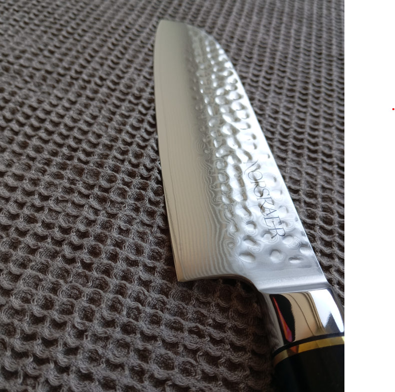 Vi har valgt at konstruere alle vores Norskaer Original knive med det samme avancerede 67-lags damaskusstål, der kombinerer både æstetik og funktionalitet på en unik måde. Dette stål er omhyggeligt sammensat omkring en central kerne i hver kniv, hvilket giver kniven dens overlegne skæreevne og holdbarhed.