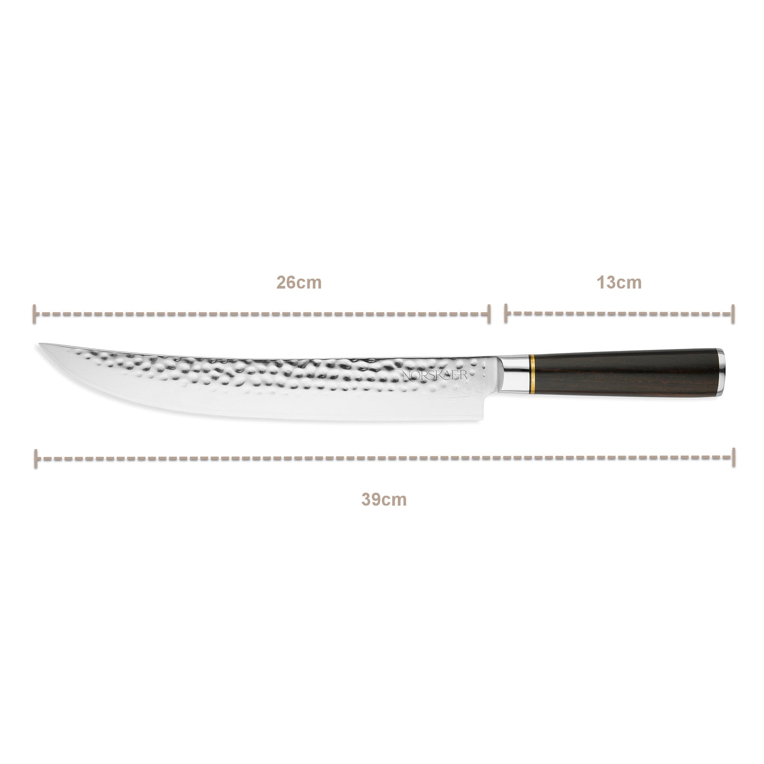 Men et godt greb er kun den ene halvdel af ligningen. Knivens balance er også afgørende for brugerens oplevelse og ydeevne. En velafbalanceret kniv føles behagelig og let at håndtere, hvilket gør det muligt at arbejde hurtigt og præcist uden at blive træt. Vi har derfor omhyggeligt justeret balancepunktet på vores knive for at sikre, at de føles lette og behagelige i hånden, uanset om man skærer tynde skiver af kød eller hakker grøntsager i små terninger.