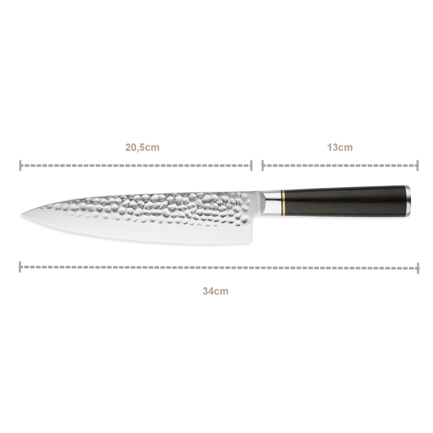 Vores knive, konstrueret med 67-lags damaskusstål, repræsenterer en fusion af traditionelt håndværk og moderne teknologi. Resultatet er en kniv, der ikke kun er visuelt imponerende, men også leverer en uovertruffen præstation i køkkenet. Vi er stolte af at tilbyde dig en kniv, der kombinerer styrke, skarphed og skønhed i et og samme værktøj.