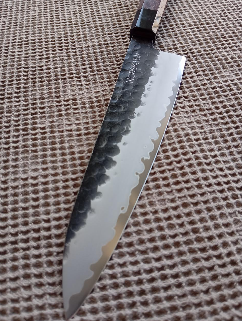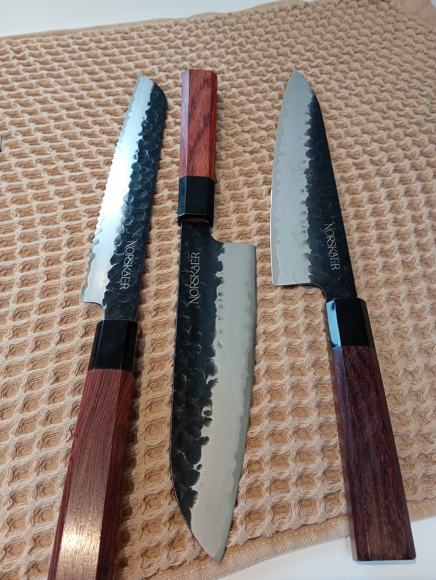 Derfor har vi dedikeret tid og opmærksomhed til designet af vores knivgreb. På vores Norskaer Black Buffalo serie, har vi udviklet et 8-kantet skæfte, som sikrer et solidt greb om knivene, og giver perfekt afbalancering af knivene. Vi har nøje overvejet ergonomi og materialer for at sikre, at grebet ikke kun føles komfortabelt i hånden, men også giver den nødvendige stabilitet og kontrol under brug. Vores mål er at skabe et greb, der passer perfekt til brugerens hånd og giver en følelse af sikkerhed og kontrol, uanset om man skærer, hakker eller snitter.