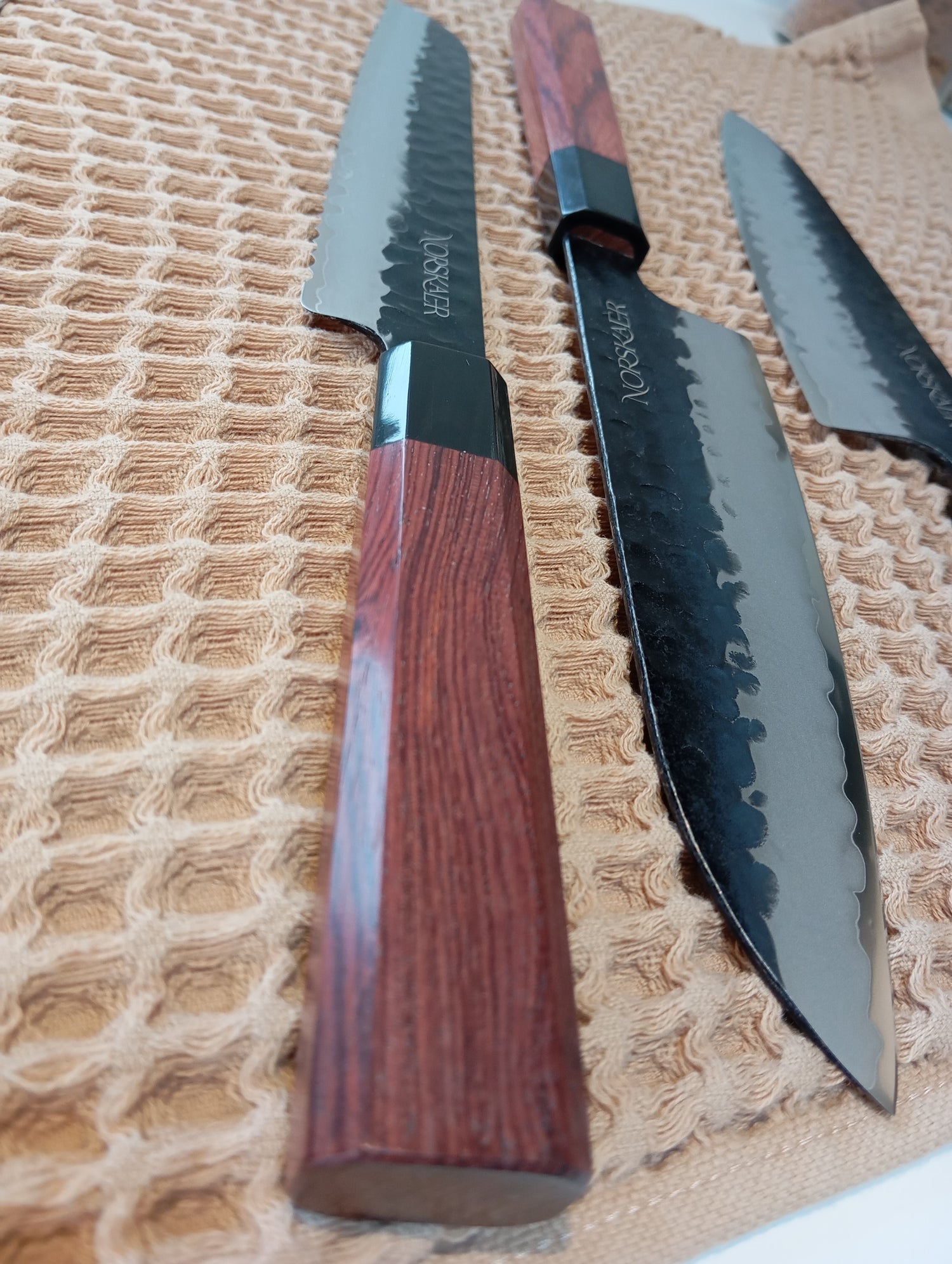Vores knive, bygget med 3-lags stål, repræsenterer en fusion af traditionelt håndværk og moderne teknologi. De leverer en exceptionel ydeevne og et tidløst design, der gør dem til en uundværlig del af dit køkken.